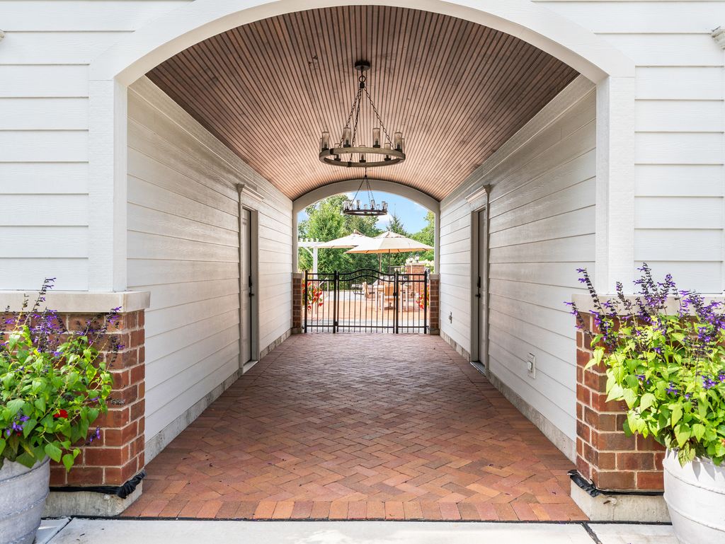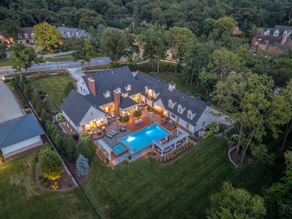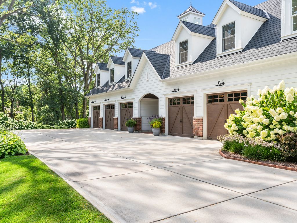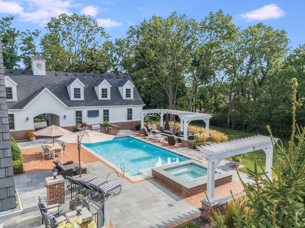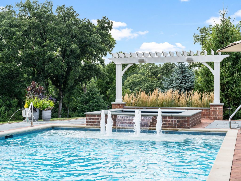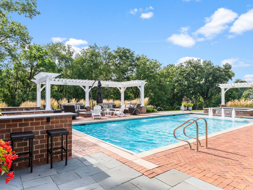 Timeless elegance meets refined craftsmanship in the custom-built "Hobson Farmhouse", a private 1.38-acre wooded estate that embodies the pinnacle of luxury living. Designed by a renowned architect and brought to life by a highly regarded custom builder, this 9,000+ square-foot residence showcases artisanal detailing, exceptional finishes, and an award-winning, professionally landscaped plan that creates an unforgettable first impression. With 6,150 square feet above grade, the home offers five spacious bedrooms (primary suite on the first floor), six full baths, and one half bath, each designed with comfort and timeless style in mind. The five-car heated garage features epoxy floors, custom storage, and built-in media. Step outside to a resort-caliber outdoor oasis: a sparkling pool and spa framed in bluestone and brick, an alfresco kitchen, covered dining area, outdoor TV, fire pit, and pergola- all surrounded by lush, private grounds. The heart of the home is a custom chef's kitchen, featuring induction cooking, a steam oven, a dedicated catering pantry with prep area, an additional freezer, wine fridges, a wet bar, Fisher & Paykel dishwasher drawers, and striking quartzite waterfall-edge countertops. Open-concept living spaces are enhanced by three interior fireplaces and French doors throughout, leading to multiple covered porches with serene views. The 3,500-square-foot finished lower level offers nine-foot ceilings, a state-of-the-art fitness center, an expansive wine room, a custom bar, media and entertaining spaces, and abundant storage. Every detail speaks to luxury: custom cabinetry, Sub-Zero and Wolf appliances, Stark carpeting, Visual Comfort lighting, Emtek hardware, and integrated Control4 smart home technology for sound, climate, and entertainment. Impeccably designed, flawlessly executed, and completely turnkey-the Hobson Farmhouse is a rare opportunity to own a legacy property in one of Naperville's most coveted locations. The home includes a Generac brand generator.
