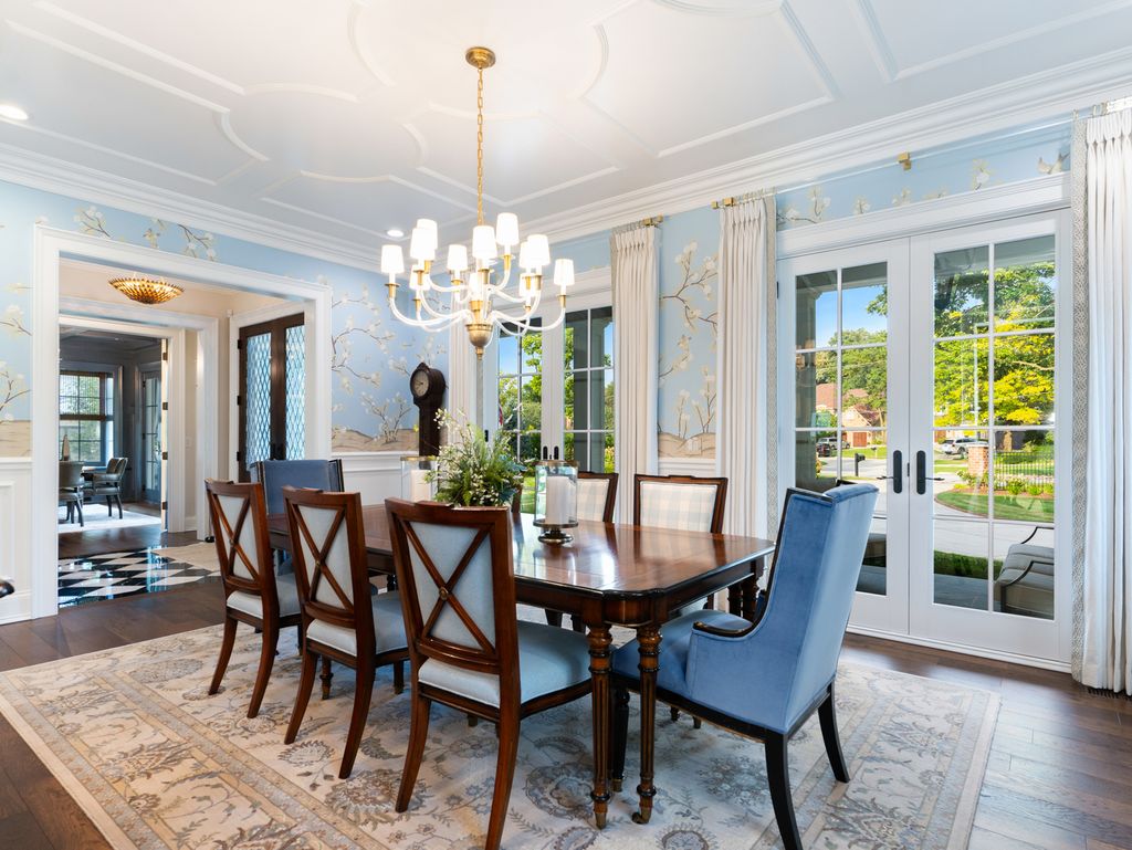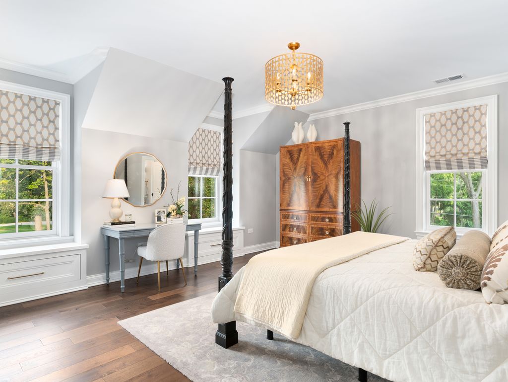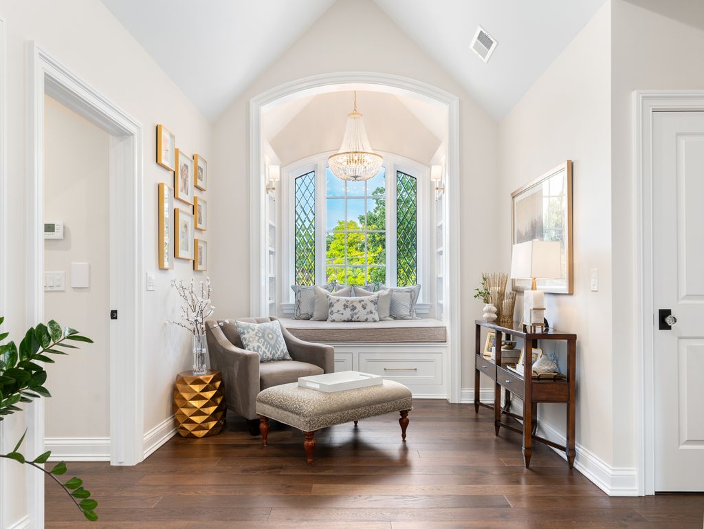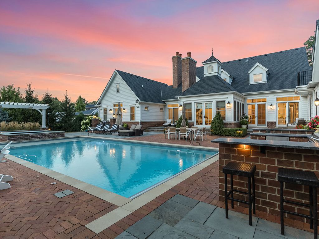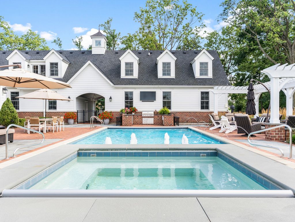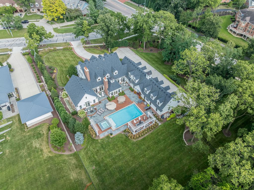 Timeless elegance meets refined craftsmanship in the custom-built "Hobson Farmhouse", a private 1.38-acre wooded estate that embodies the pinnacle of luxury living. Designed by a renowned architect and brought to life by a highly regarded custom builder, this 9,000+ square-foot residence showcases artisanal detailing, exceptional finishes, and an award-winning, professionally landscaped plan that creates an unforgettable first impression. With 6,150 square feet above grade, the home offers five spacious bedrooms (primary suite on the first floor), six full baths, and one half bath, each designed with comfort and timeless style in mind. The five-car heated garage features epoxy floors, custom storage, and built-in media. Step outside to a resort-caliber outdoor oasis: a sparkling pool and spa framed in bluestone and brick, an alfresco kitchen, covered dining area, outdoor TV, fire pit, and pergola- all surrounded by lush, private grounds. The heart of the home is a custom chef's kitchen, featuring induction cooking, a steam oven, a dedicated catering pantry with prep area, an additional freezer, wine fridges, a wet bar, Fisher & Paykel dishwasher drawers, and striking quartzite waterfall-edge countertops. Open-concept living spaces are enhanced by three interior fireplaces and French doors throughout, leading to multiple covered porches with serene views. The 3,500-square-foot finished lower level offers nine-foot ceilings, a state-of-the-art fitness center, an expansive wine room, a custom bar, media and entertaining spaces, and abundant storage. Every detail speaks to luxury: custom cabinetry, Sub-Zero and Wolf appliances, Stark carpeting, Visual Comfort lighting, Emtek hardware, and integrated Control4 smart home technology for sound, climate, and entertainment. Impeccably designed, flawlessly executed, and completely turnkey-the Hobson Farmhouse is a rare opportunity to own a legacy property in one of Naperville's most coveted locations. The home includes a Generac brand generator.