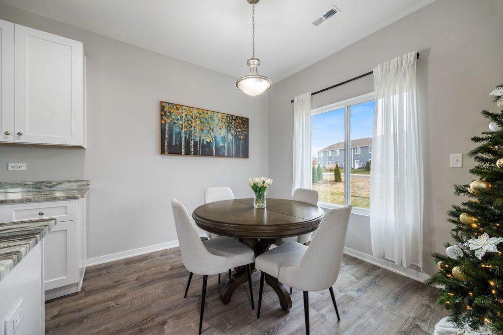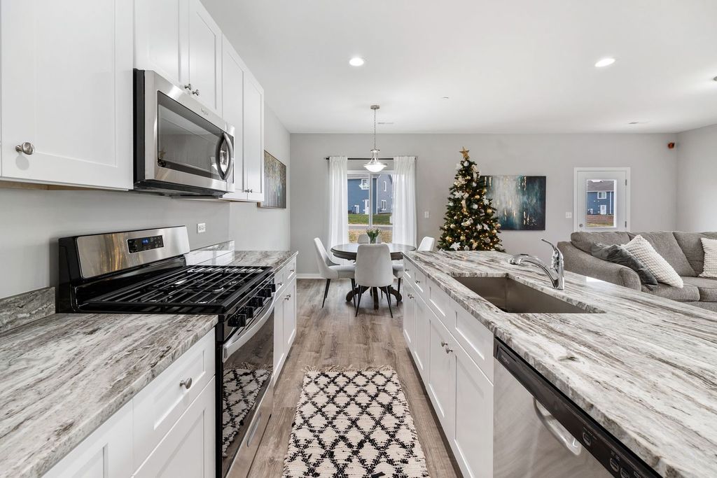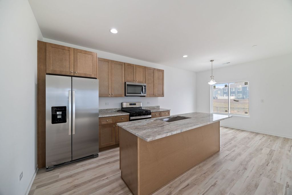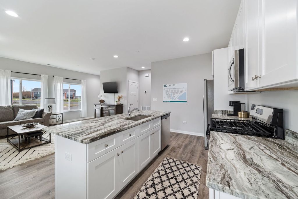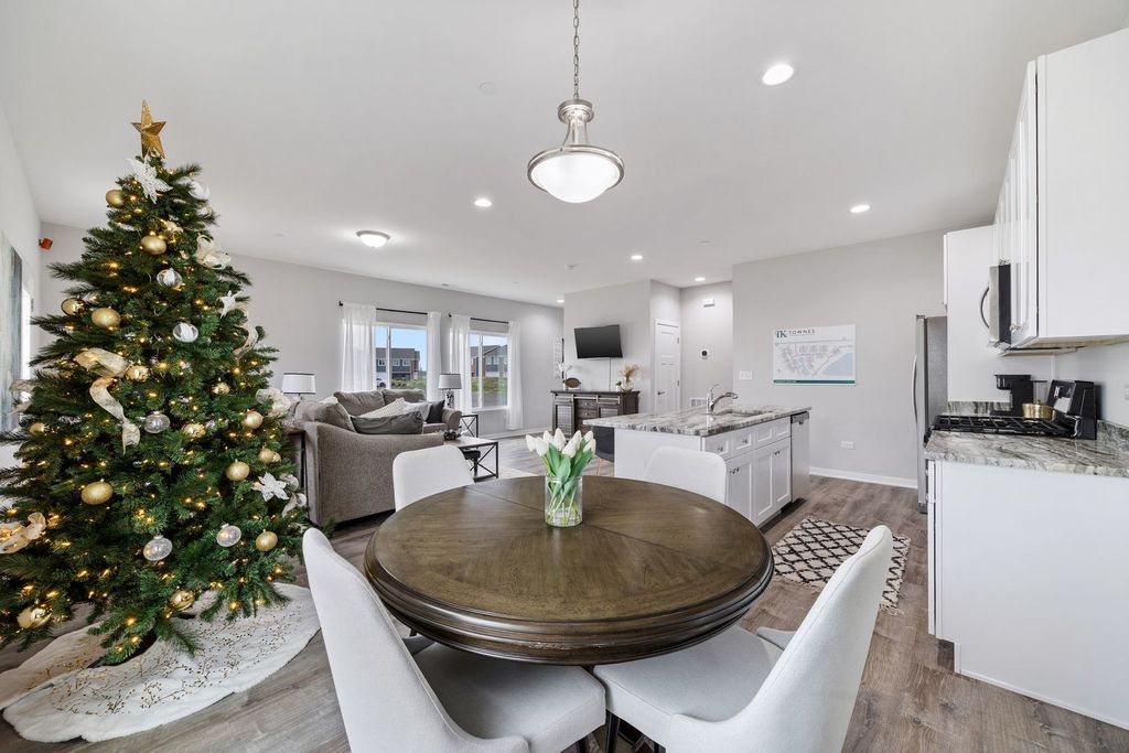 MOVE IN READY UNIT CAN BE DELIVERED WITHIN 2 WEEKS. HOME FOR THE HOLIDAYS! Photos are of our model. Welcome to the new construction homes at Townes of Kendall. Thoughtfully designed with luxury vinyl plank flooring throughout the main level, 9-ft ceilings, and an open-concept layout. Kitchen features 42" cabinetry, granite counters throughout, stainless steel appliances, and a large island with integrated sink. Upstairs includes 3 bedrooms, a loft, 2 full baths, and a convenient laundry closet. Built with efficiency in mind: high-performance windows, energy-efficient HVAC, upgraded insulation, EV-charger ready outlet, ECOBee thermostat, Samsung Wi-Fi appliances, Wi-Fi garage transmitter, and pre-wired cable/lighting in all bedrooms. Move-in ready homes available OR choose a unit still in construction and personalize finishes with Spring delivery. Preferred lender ready for quick closings. Models located at 1220 Gillespie Ln, Yorkville.