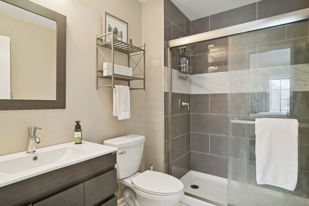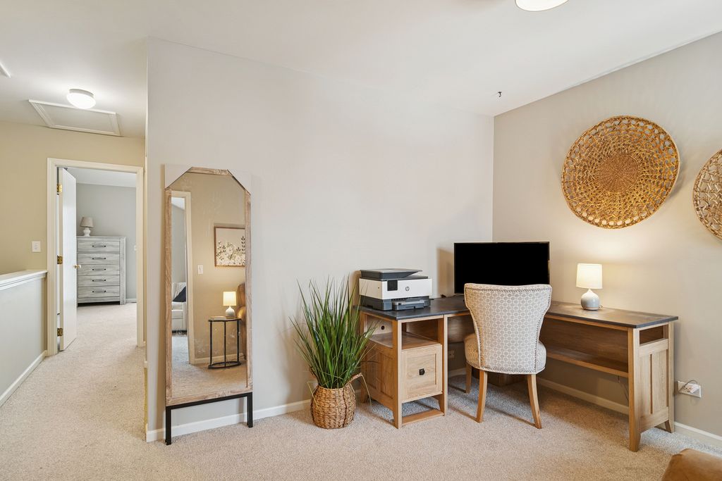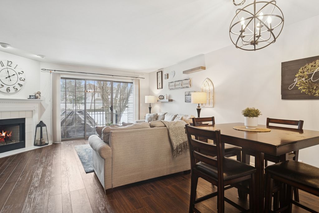 This lovely townhome in the desirable Wellington Park community offers all the space you need without the maintenance. The home has been updated with warm neutral finishes, rich vinyl plank flooring on the main level, and a beautifully remodeled primary bathroom. The kitchen features abundant cabinetry, stainless appliances, and an opening to the main living and dining areas, allowing you to interact with family and guests. A corner fireplace provides cozy vibes, and the large sliding doors allow you to enjoy outdoor views throughout the seasons. Easily access the balcony and relax with delightful tree top and pond views. Upstairs you'll find a generously sized primary suite with soaring ceilings, a wall of closets, remodeled en-suite bath with skylight and a private balcony-offering a place of serenity at the end of the day. On this level, you will also find a large second bedroom, laundry, and a loft-perfect for a home office, hobby, or sitting area. The finished basement adds another level of living with plenty of space for recreation and entertaining and enjoyable natural light. Imagine game days or movie nights with the convenience of the built-in wet bar. The location is steps from Palatine Hills Golf Course, walking trails, Deer Grove Forest Preserve, close to Deer Park shops and restaurants, easy access to downtown Palatine, METRA train, and area expressways. New furnace-2025, new washer, dryer, and dishwasher-2019. Other upgrades include recessed lighting and a smart thermostat.