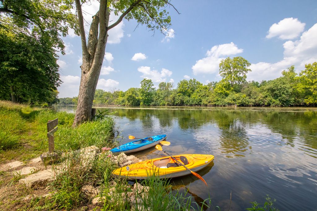 Riverfront Retreat The DuPage River flows just beyond your drive where you'll enjoy private water access with 200' of frontage. Kayak, tube and fish the days away or just enjoy the deeply calming view from your riverfront seat. Surrounded by forests, parkland, and yet close to everything downtown Plainfield has to offer. Paved lit trails lead to parks, ice cream shops, restaurants and spots to grab a glass of wine. The home has 4 bedrooms and 2 baths with a new luxury master en suite. Each room features brand new high efficiency AC/heat pump. Fresh fruit abounds with your own mini orchard of peach, pear and apple trees. Fully fenced in yard for four legged friends and an oversized shed to house all the gear. US waterproofing lifetime warranty included.