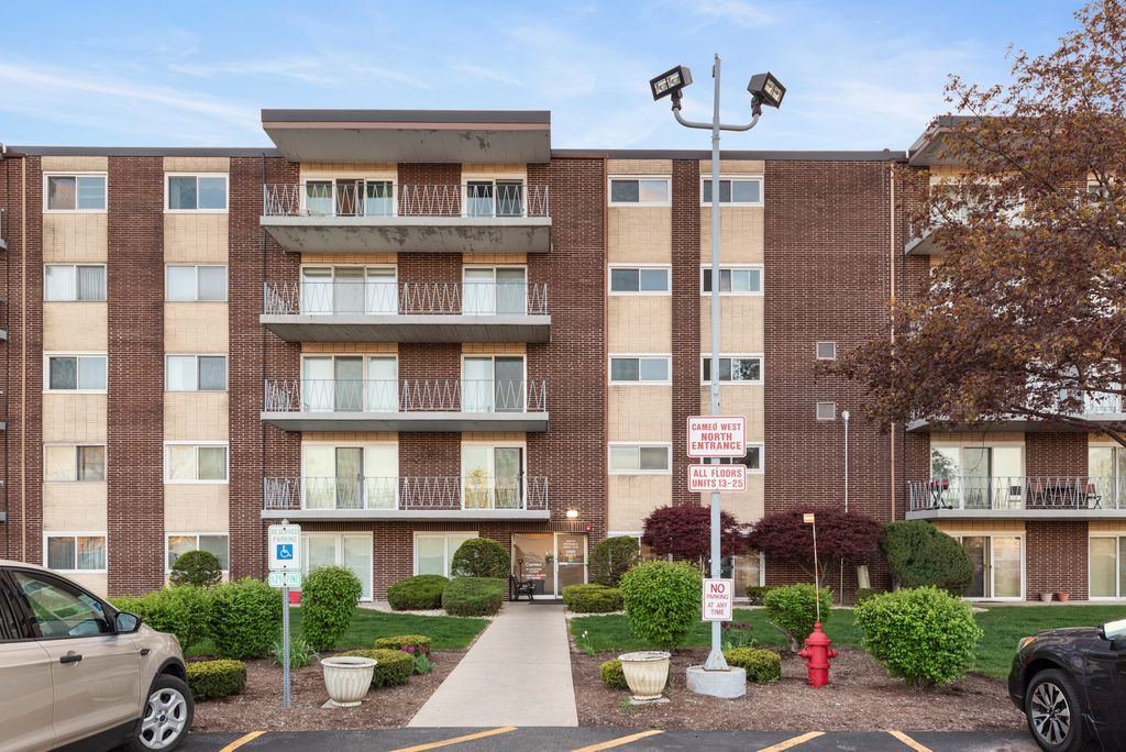 Welcome to your new home in Cameo West, a warm and inviting 55+ adult community designed for comfort, convenience, and easy living. This well-maintained 2-bedroom, 1-bath condo is move-in ready and offers a thoughtful layout with recent upgrades that provide peace of mind and modern appeal. Step inside to find new Andersen windows and sliding glass doors that flood the space with natural light while enhancing energy efficiency and style. The kitchen features white painted cabinetry and generous countertop space, perfect for everyday living or entertaining. Just off the kitchen, the dining area offers a cozy spot for meals and gatherings. The spacious family room opens to a west-facing balcony through a large sliding glass door, providing the perfect setting to enjoy beautiful sunsets and fresh air. The primary bedroom also has direct access to the balcony, offering a serene place to unwind at the end of the day. Located on the third floor, this unit is ideally situated just steps from the elevator, laundry facilities, and storage room, giving you easy access to all the essentials without sacrificing privacy or quiet. Included with the sale is Garage #1, a rare and valuable feature that adds extra convenience and security. In addition to the new windows and sliding doors, the home also includes a new hot water heater (2018) and HVAC system (2014), offering added efficiency and reliability for years to come. Cameo West is set in a fantastic location with quick access to I-355, making it easy to explore the surrounding area. You'll also enjoy being close to a wide variety of shopping, dining, and recreational options, making this an ideal place to call home. Don't miss your opportunity to own a beautifully updated condo in a friendly and well-maintained community!