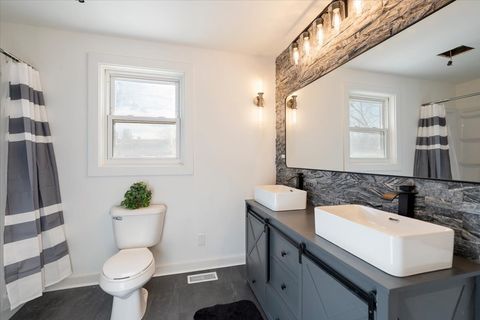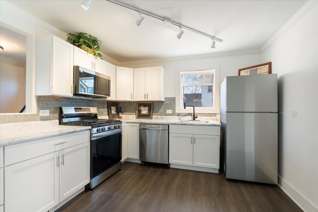 MANY SHOWINGS AND MULTIPLE OFFERS RECEIVED - HIGHEST AND BEST DUE MON 1/19 8PM CST. Move-in ready and completely remodeled on a spacious, high-and-dry double lot! This beautiful home features an extra-large, like-new detached 3-car garage-ideal for a handyman or craftsman-plus plenty of additional driveway parking. Inside, mostly everything is new, including a brand-new kitchen with new countertops and appliances, high-end trim package, new doors, flooring, custom lighting, and fresh paint throughout. The spacious first-floor primary bedroom offers an adjacent luxurious bathroom with double bowl vanity, updated lighting, tile, flooring, tank-less water heater, and a bathtub. The inviting living room features a cozy wood-burning fireplace. Upstairs, you'll find two additional newly carpeted bedrooms. The exceptionally clean basement provides excellent storage. Located across the street from Bangs Lake, and within walking distance to shopping and restaurants-this is a rare opportunity in a prime Wauconda location. Book a showing today!