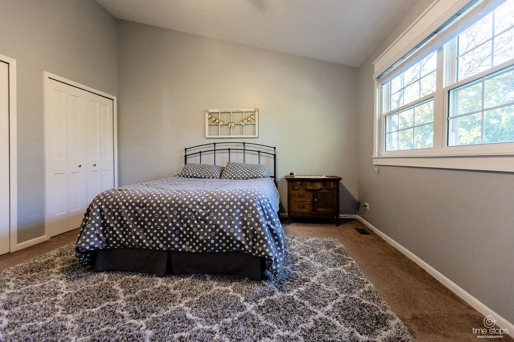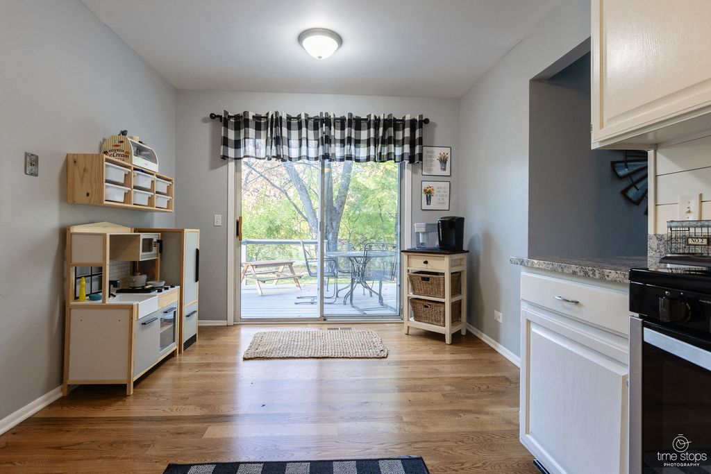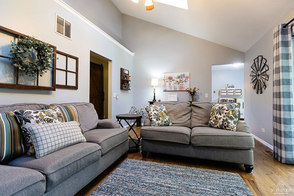 Absolutely stunning 4 bedroom, 2 1/2 bath home in north Woodridge. Meticulously kept, this home is absolutely move in ready, boasting a newer kitchen, updated bathrooms, new flooring, A/C, furnace, roof, and the list goes on. This home on High Trail flows with style, design, attention to detail and chic features, surely to "wow" any buyer. The main floor has a classic living room adjacent to the formal dining area; the kitchen has newer appliances, granite countertops and clean, sleek shiplap backsplash for the modern appeal. The comfortable family room has a gas-start, wood burning fireplace, perfect for the holidays or those chilly nights, high vaulted ceilings and neutral new flooring. The second floor features 4 bedrooms, with the primary ensuite bath updated with a large walk-in shower and newer vanity, and the main bath being recently updated as well. The other three bedrooms are neutral and spacious, including a huge former loft space that's been converted into a large bedroom or functional great room. The basement is finished for added recreational space. Super clean 2 car garage, fantastic deck, and a relaxing yard surrounds the beautiful grounds to call home. All the big, expensive updates have been done: Furnace 2024, A/C 2022, roof & gutter guards 2024, along with a radon mitigation system. Other improvements and dates are in the agent comments. This is a gem in Woodridge in a fantastic location, extremely close to shopping, dining and entertainment. Check it out before it's gone!