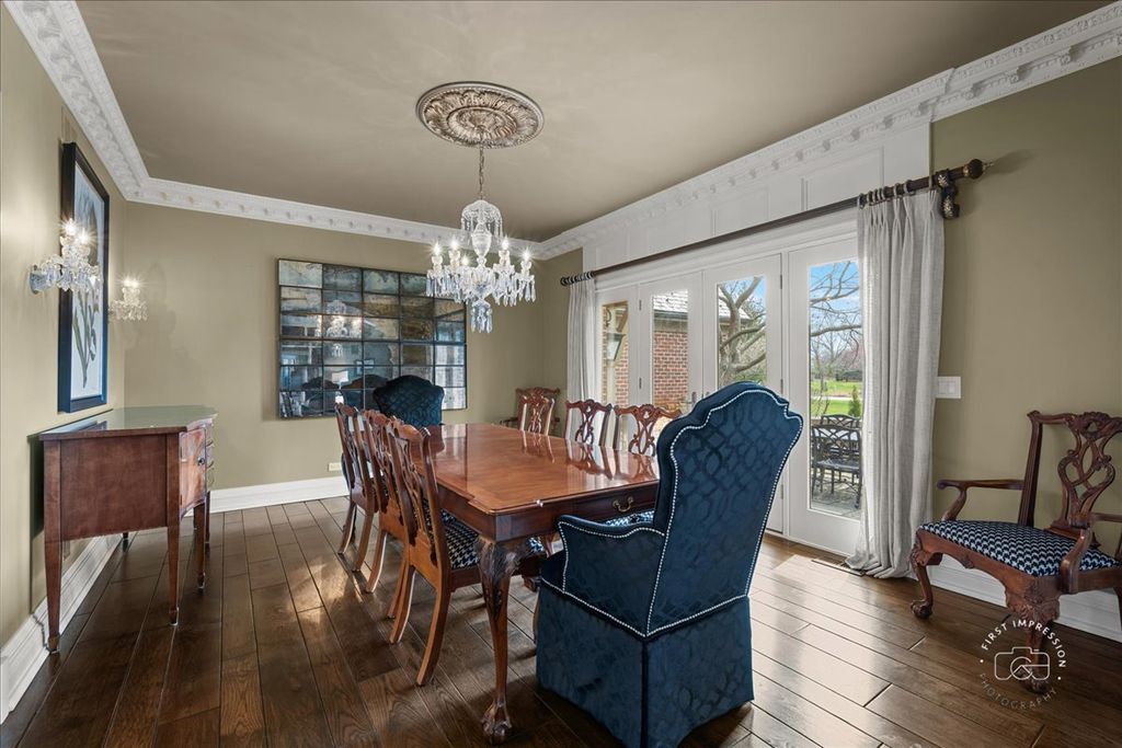 Welcome to one of the most distinguished homes in the prestigious Crane Road Estates, where timeless architecture, unrivaled craftsmanship, and luxurious amenities come together to create an extraordinary living experience. Custom built by Avondale Homes as the builder's own residence, this 8,800+ square foot masterpiece leaves no detail overlooked. From the moment you enter the grand foyer, you'll be captivated by the home's refined character-intricate millwork, arched entryways, beamed ceilings, and stunning stained glass accents echo the artistry found throughout. The formal living room and executive office set a sophisticated tone, while the flowing layout reveals thoughtfully designed spaces perfect for both daily living and elegant entertaining. The gourmet chef's kitchen is a culinary dream, featuring a professional Viking range, two dishwashers, a generous walk-in pantry, and seamless connection to the inviting family room-complete with a striking built-in bar. A spectacular sunroom offers panoramic views of the meticulously landscaped grounds, designed by Scentimental Gardens, and opens to expansive patios overlooking peaceful water vistas and tranquil gardens. The sought-after first-floor primary suite offers a serene retreat with dual walk-in closets and a luxurious spa-inspired bathroom. Upstairs, each bedroom enjoys its own en-suite bath and convenient access to a versatile bonus room-ideal for a playroom, study space, or second office. The finished lower level is an entertainer's paradise, boasting a home theater, wine cellar, full second kitchen, and additional laundry area. A stately circular driveway and three-car garage complete the home's impressive exterior. From its striking design to its unmatched attention to detail, this residence is truly one of the Fox Valley's finest offerings-a rare opportunity to own a home of such exceptional caliber.