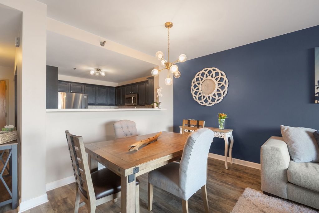 Nothing to do but move in! Updated one bedroom plus den condo conveniently located near downtown Palatine. Luxury vinyl plank flooring throughout the entire condo! Kitchen offers modern cabinets with a beautiful tile back splash and stainless steel appliances. Spacious living room has sliders leading to private balcony. Primary suite has full bathroom. Tons of possibilities in the den with glass French doors. Seller would consider selling furnished! In unit washer/dryer, Garage space #56 and storage locker #S2-56.