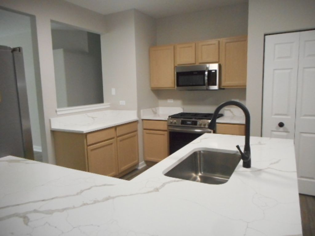 WHAT A HIDDEN GEM .....TUCKED AWAY ....Located in a quiet serene subdivision backing to trees. Beautiful end unit with 2 bedrooms and 2 full baths. Sweet ,Sweet unit with fresh new paint, new laminate wood flooring and new plush carpet in bedrooms. Oversized 2 car attached garage and a full walk out basement. This unit has vaulted ceilings a brand new ceramic fireplace that looks like marble plus foyer has same tile, Spacious and brand new faux wood blinds in every room , This unit als has a great deck and patio. This home is in a great subdivision and is priced for a quick sale. Kitchen has all new stainless steel appliances and quartz counter tops . Refreshed and ready to go ... This unit is perfect for you !
