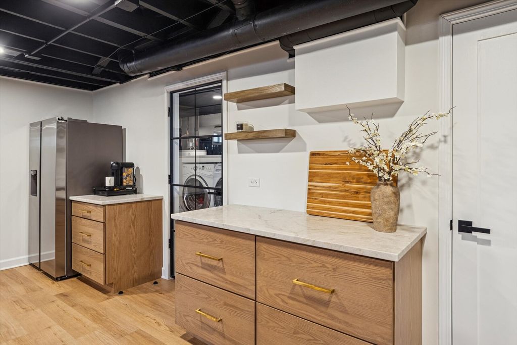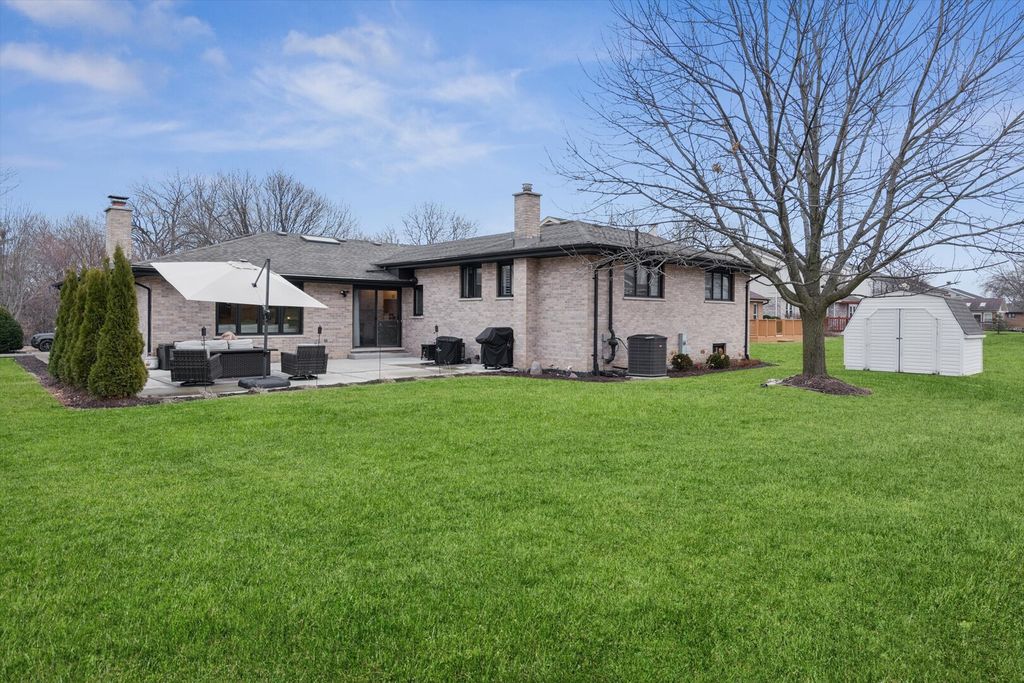 Fully Renovated 3 Bedroom | 3.1 Bath/full finished basement- Ranch on a Cul-de-Sac.Welcome to this beautifully renovated all-brick 3-step ranch, perfectly positioned on an impressive 84' wide lot in a quiet cul-de-sac location. The highly sought-after Granada model remains one of the most popular floor plans-and this home elevates it with modern updates inside and out. From the moment you arrive, you'll notice the brand-new hardscape, professional landscaping, extended concrete patio, and extra-wide 3-car driveway. A generous covered front porch welcomes you into a bright, open foyer with views of the sun-filled living and dining rooms. The stunning, fully updated kitchen features custom cabinetry, KitchenAid appliances, abundant storage, and a built-in bar area with wine fridge. The adjoining dinette flows seamlessly into the inviting family room, highlighted by a brick fireplace, hardwood flooring, and beautiful natural light. Three steps up lead to the private bedroom level, offering a spacious primary suite with updated bath, two additional bedrooms with ample closet space, and a beautifully renovated hall bath. The fully finished basement expands your living space with a large recreation area, built-in cabinetry, a full bath, and generous storage. And laundry room with wet sink. 2.5 car garage with epoxy floor. Nestled in an amazing community close to top-rated schools, shopping, parks, entertainment, and expressways-this move-in ready home truly has it all.